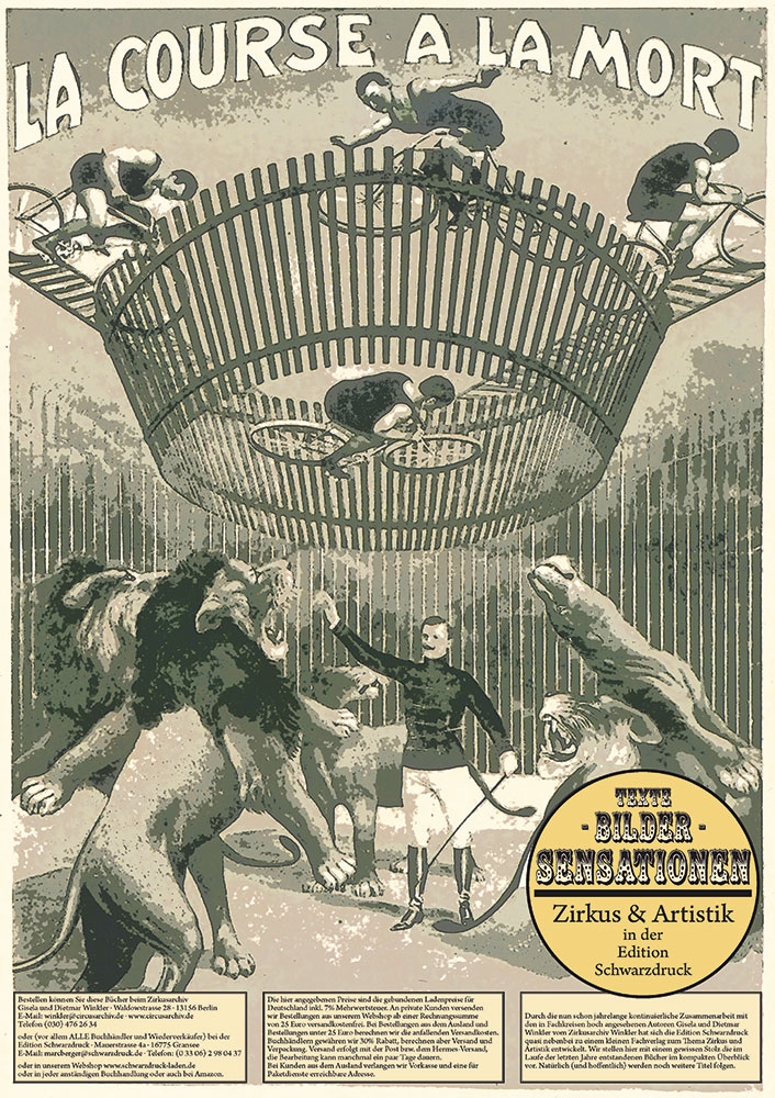 im Format von etwa A3, gefalzt und auf der Rückseite mit allen wesentlichen Angaben zu unserer derzeitig lieferbaren Kollektion von Zirkusbüchern versehen, kann ab sofort ganz einfach und vor allem kostenlos erworben werden, indem man mindestens eins dieser Bücher bei uns im Webshop bestellt.