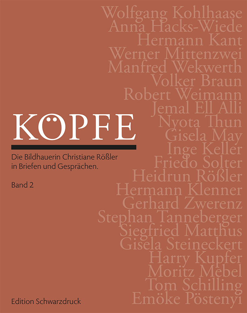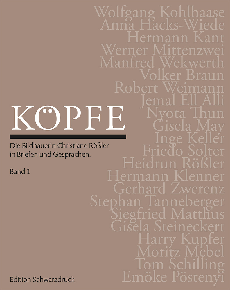 Die Bildhauerin Christiane Rößler hat dargestellt, was sie gesehen hat: Gesichter und Lebenswege und den Lauf der Jahre. Sie beschreibt in Briefen und Tagebüchern die Entstehung von 22 bildhauerischen Portraits und einer Figur im Zeitraum von 1999 bis 2019. Die Porträtierten sind Peter Hacks, Wolfgang Kohlhaase, Anna Hacks-Wiede, Hermann Kant, Werner Mittenzwei, Manfred Wekwerth, Volker Braun, Jemal Ell Alli, Robert Weimann, Nyota Thun, Gisela May, Inge Keller, Friedo Solter, Heidrun Rößler, Hermann Klenner, Gerhard Zwerenz, Stephan Tanneberger, Siegfried Matthus,