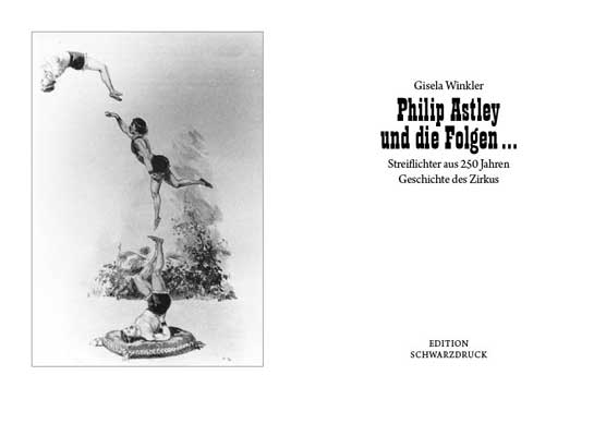 Gisela Winkler hat – nach ihren umfangreichen zwei Bänden zur Zirkusgeschichte „Von fliegenden Menschen …“ – einige Aspekte zur Zirkusgeschichte populärwissenschaftlich in eine kurze Form gebracht und in der Zirkuszeitung in zwölf Teilen veröffentlicht. Wir möchten hiermit diesen übersichtlichen und preiswerten Einstieg in die Geschichte des Zirkus auch unseren Lesern zugänglich machen.