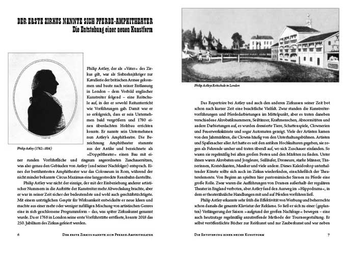 Als Philip Astley 1768 in London seine Riding School eröffnete und bald die Reitvorführungen mit Akrobatik, Clownerie, Dressuren und szenischen Darstellungen ergänzte, war nicht abzusehen, dass sich daraus eine neue Kunstform, der Zirkus, entwickeln würde.