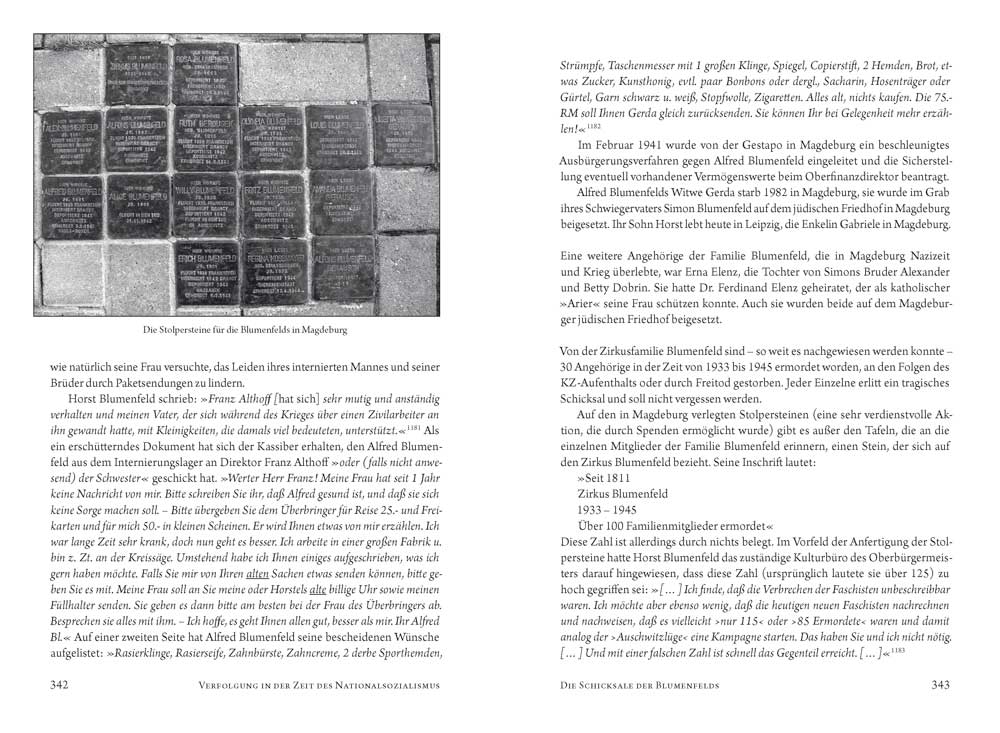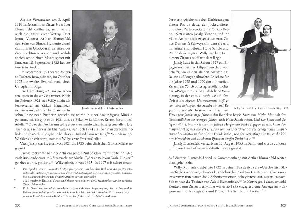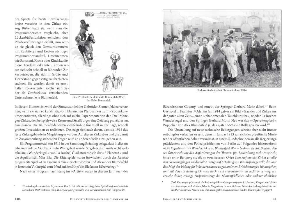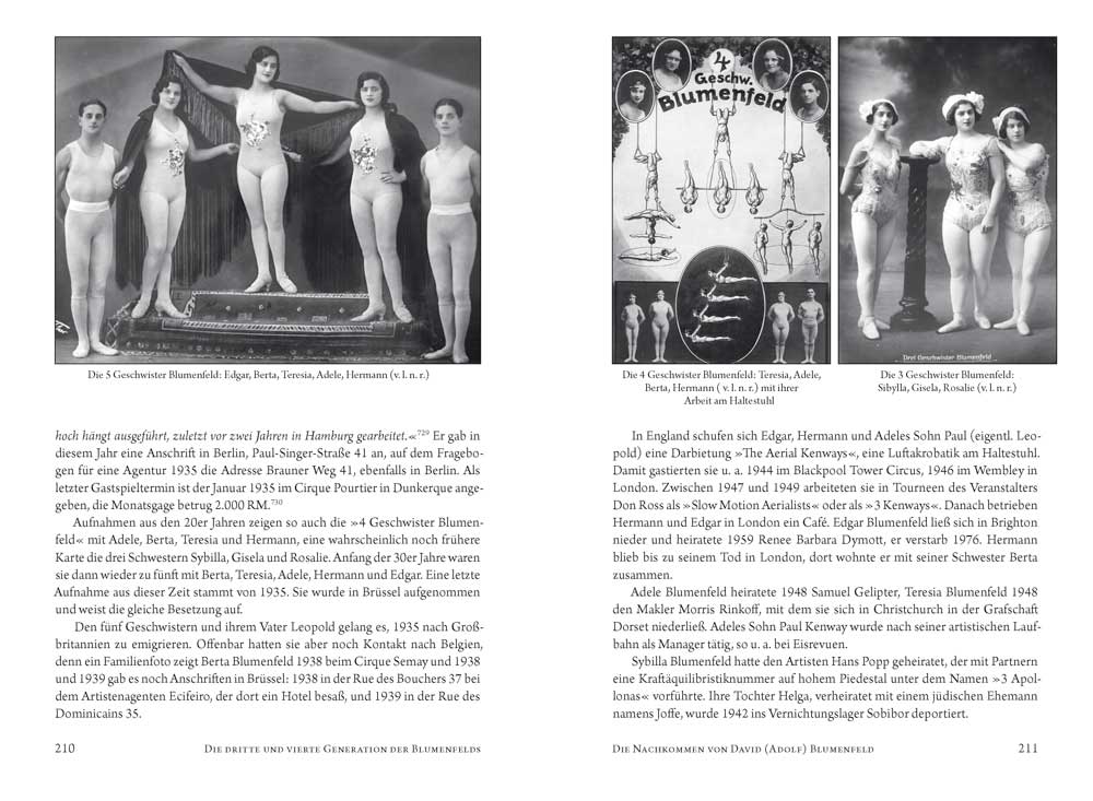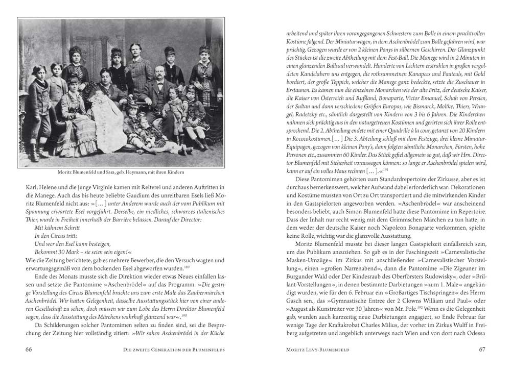 Die Blumenfelds stellen in der deutschen Zirkusgeschichte in mancherlei Hinsicht eine Besonderheit dar: Sie waren eine der ganz wenigen jüdischen Zirkusfamilien und hatten in extremem Maße unter der Verfolgung durch den nazistischen Rassenwahn zu leiden. Sie bildeten eine außerordentlich große, weitverzweigte Familie und so gab es nicht den einen Zirkus Blumenfeld, sondern eine ganze Reihe von Unternehmen dieses Namens. Sie hielten länger als andere am Prinzip des Pferdezirkus fest und verkörperten so beispielhaft die klassische Tradition des Zirkus. In der Dokumentation werden die Entwicklungen und Familiengeschichten der einzelnen Familienzweige und ihrer Zirkusse verfolgt und ihre Schicksale dargelegt, die untrennbar mit der Geschichte der Juden in Deutschland verbunden waren. Dabei wird mit mancherlei Legenden aufgeräumt, die sich um die Geschichte der Blumenfelds ranken, und die Zirkusfamilie Blumenfeld erhält den ihr gebührenden Platz in der deutschen Zirkusgeschichte.