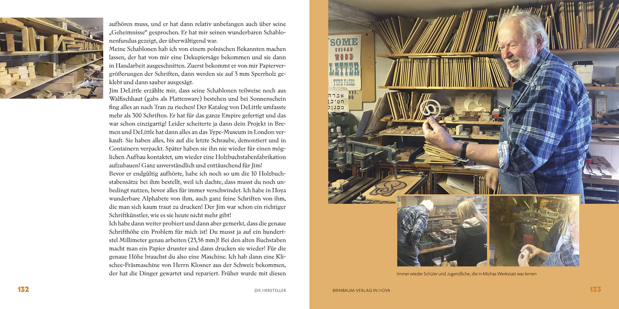 Peter Vöge ist der Faszination der Holzlettern erlegen und hat sich fast sein gesamtes Berufsleben ausgiebig damit beschäftigt. Als Freinet-Pädagoge, Drucker, Händler, Ausstatter und Vermittler verschiedenster Druckereien und nicht zuletzt sogar selbst an der Pantographenfräse arbeitend. Dabei hat er auch die letzte Generation derer, die hierzulande professionell Holzlettern herstellten, sogar persönlich kennengelernt, mit ihnen gearbeitet und geredet, von ihnen gelernt und vieles dokumentiert. Diese einmalige Kenntnis einer nun fast ausgestorbenen Szene gibt er seit Jahren gerne an Interessierte weiter – in Vorträgen, Workshops, Erzählungen.