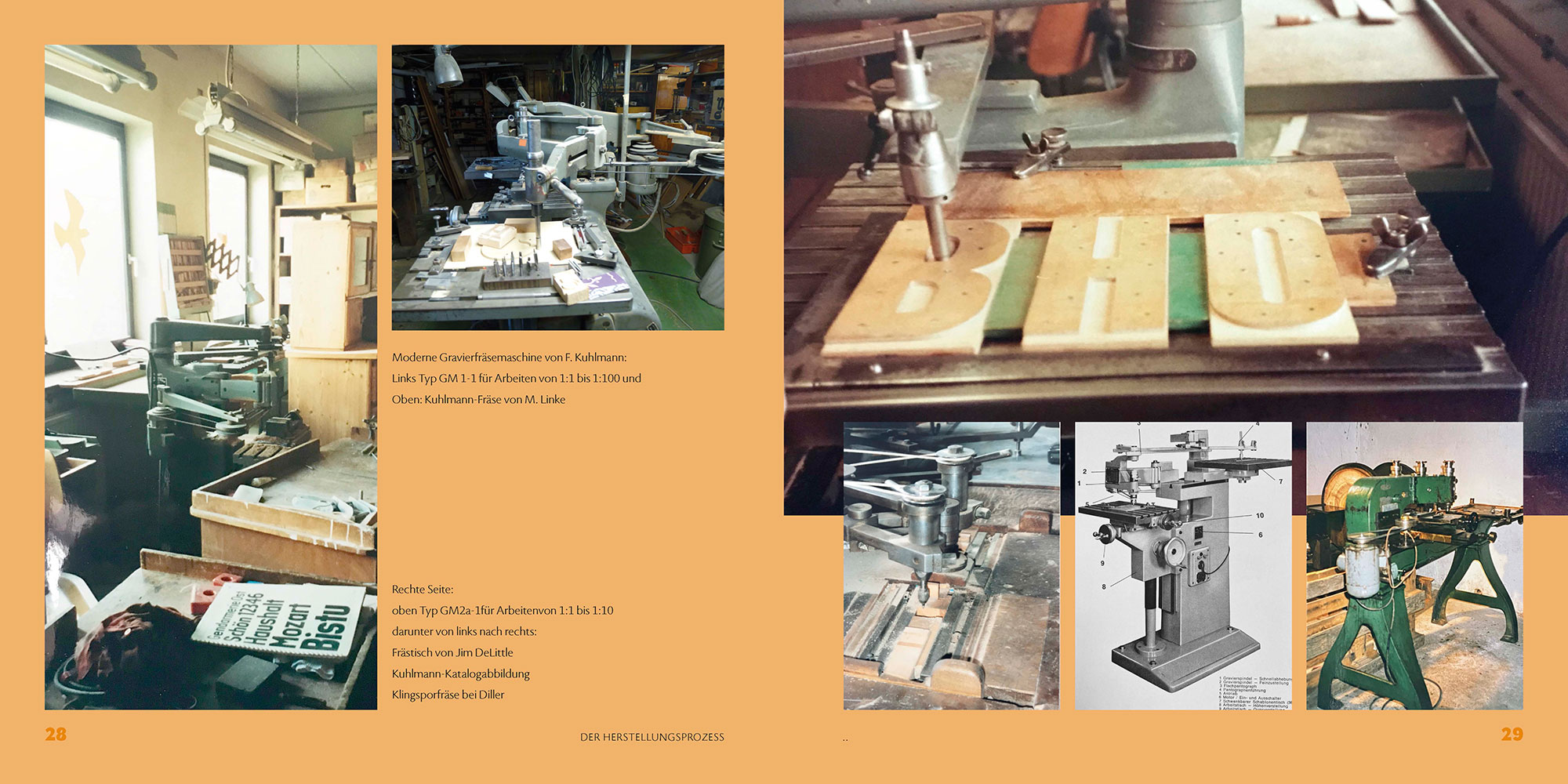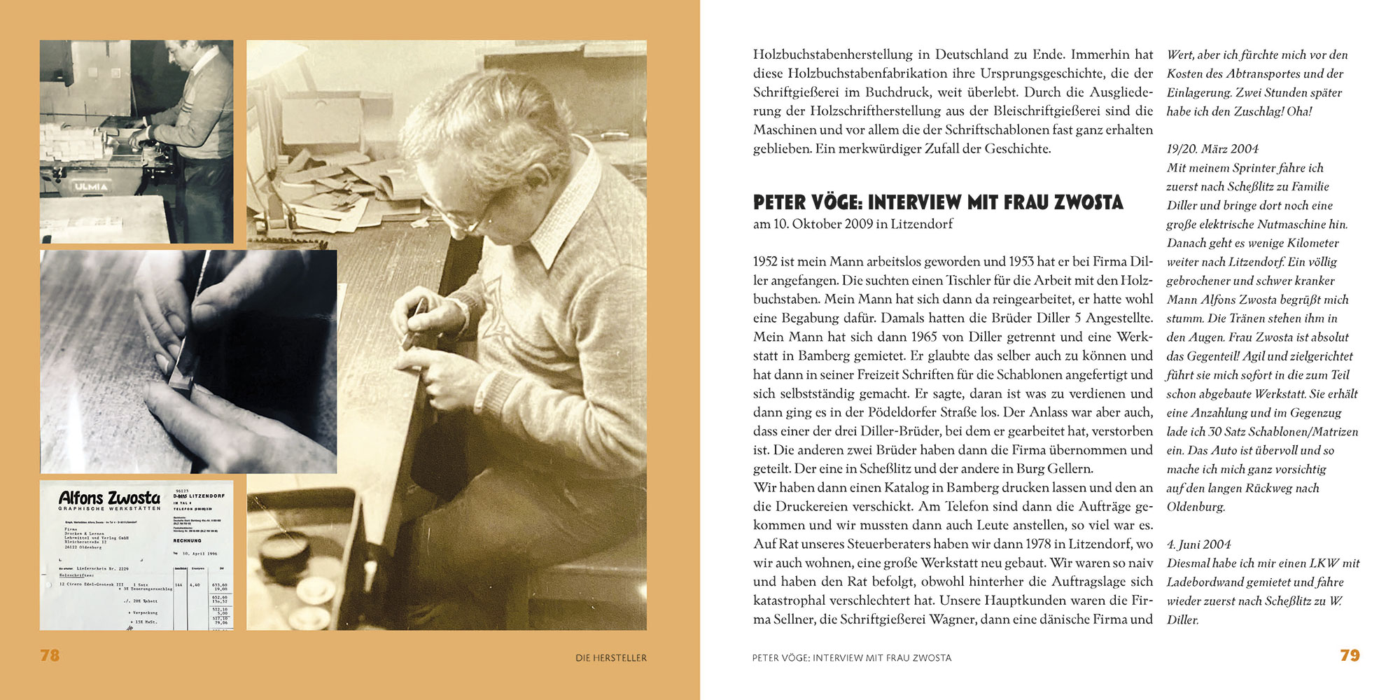 Dieses kleine – dafür außerordentlich reich bebildertes – Buch kann das natürlich auch nicht leisten, ist aber ein erster Versuch, zumindest einiges Wissenswertes für die „Nachwelt“ festzuhalten. Es ist eine ganz persönliche Bilanz von Peter Vöge: kein rein technisches Sachbuch über Fräsen und Schriftmuster, sondern Berichte über seine Arbeit mit faszinierenden Menschen und faszinierenden Lettern. Mit vielen Informationen über Schicksale von Machern und Maschinen und Einblicken in technische Prozesse.