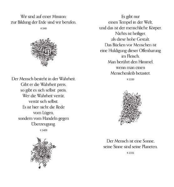 Das vierte der frechen Hefte ist gar nicht so frech, dafür aber weise und poetisch. Roland R. Berger hat eine Auswahl aus Novalis‘ Aphorismen zusammengestellt und kongenial mit Buchschmuck in verschiedenen Techniken versehen.
